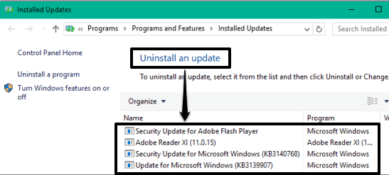 Step 4: Now you will be able to see the list of updates installed by you on different dates. You can also check the detailed information for a particular update. To remove a particular update, click on Uninstall Updates option.
