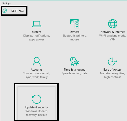 Step 1: You first have to access Settings. In that window, click on Update & security option.