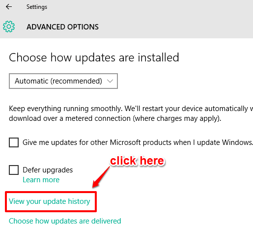 Step 3: Advanced Options window contains a “View your update history” option. Click that option.