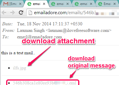 Step 4: Your friends with whom you have shared the URL can preview it on any web browser, download attachments, and download eml file of that email.