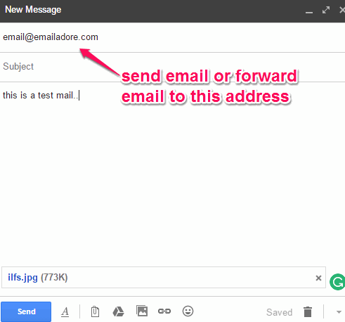 Step 1: Compose a new mail, add attachments (if any) and send it to ’[email protected]’. You can also forward any email message to this mail address.