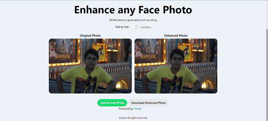 That’s it! Your uploaded photo will be enhanced and you can download it in your local files for free.