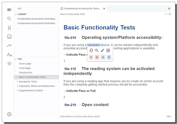 While reading, you can select a word or sentence to get additional features. You can copy, search, annotate, and highlight. It lets you annotate and highlight using different colors. And you can easily access the animation of an open book from the side panel.