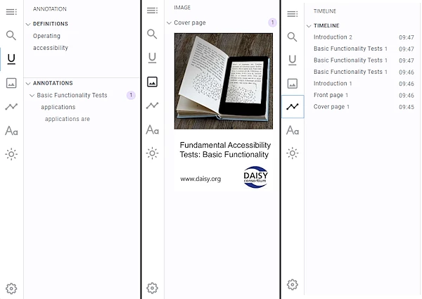 - Annotation: This section shows the annotations that you have saved in a book. It lists the highlighted work or sentences with a click-to-jump functionality.