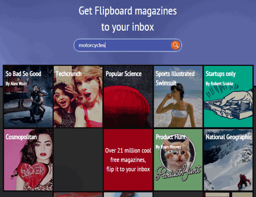 Flip2Mail is a fantastic service to get the daily digest of Flipboard magazines in your inbox. So you receive updates for your favorite magazines right in the inbox of your email account. Whether you follow Startups only, Product Hunt, National Geographic, Techcrunch, or any other service listed in the database of Flipboard, you can receive latest articles of those services in your email account.