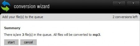 Step 3: You will be shown a summary of the conversion to be made, click the “start” button.