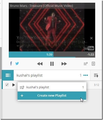This website to create playlist online comes with some very easy to use features. The process to register with the website is also very easy and users have the choice of signing up with Facebook account as well. The interface of the app is also very attractive and all the options are provided in a panel on the left side of your screen. You can visit the website from the link given at the end of the article and start creating your playlist.