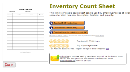 Business Form Template is another website which offer various types of free inventory templates. For each template, the website mentions its names, purposes for which it can be used, and number of downloads. The templates are available in DOC and PDF format for you to download. The website provide simple as well as feature rich inventory templates which depends upon the template type you want. You can make changes to the preset fields as per your need.