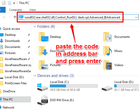 Method 2: Open Color and Appearance Wind0w In Windows 10 Using File Explorer Address Bar