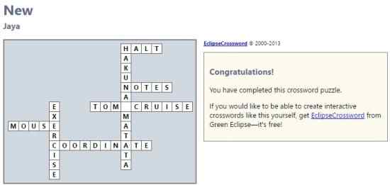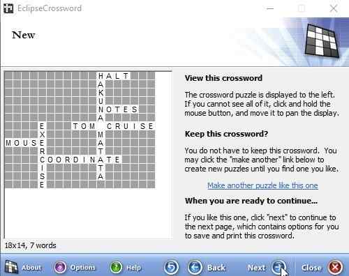 Eclipse Crossword is a real nice way to create a customized crossword puzzle which you can print or publish on the web. The wizard to create a crossword puzzle is pretty easy to follow. All you really need to do is input some words and their clues. That is it, rest everything is handled by the wizard. You can easily create great looking crossword puzzles in a matter of minutes. If you are a word puzzle lover and enjoy playing crossword puzzles, then you will definitely love this crossword creating app.
