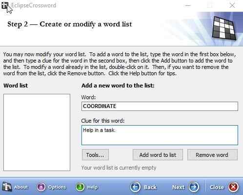 EclipseCrossword is a free Windows 10 create crossword puzzles app using a wizard which is easy to follow. Using this app and its simple wizard you can create your very own crossword puzzle in a matter of minutes. Just create a list of words, add clues for the words, and the app will take care of the rest.