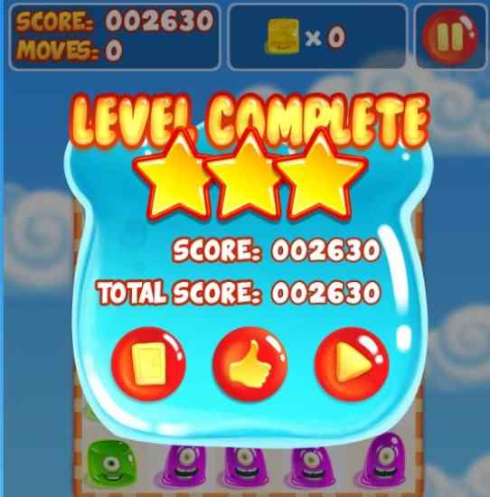 You will be able to monitor your score from the top left corner of the game play area and also you can see the number of moves you have left to complete this level. Next to it you are shown the aim of this level, as in how many jellies you have to collect and of which color. You can also pause the game in case you have to step away for a while.