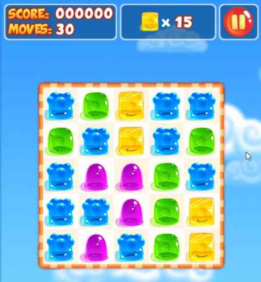 On the game board start matching same colored jellies in a vertical, horizontal, diagonal or zig zag way. When you match 3 or more jellies they will disappear from the board. If you form a long chain of jellies you will get special colored jellies which can wipe out an entire line or surrounding jellies.