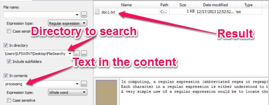 You can use the expression types (sub-string, whole word or regular expression) available in this file search utility while searching for files. This gives you the flexibility while searching and you can even find those files for which you don’t remember the exact name. The Regular Expression can be used to carry out even more precise and complex search operation.