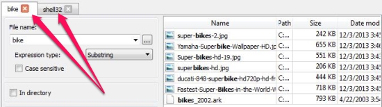 You can open tabs to search for files and arrange the results. This is a really useful feature as it lets you search for multiple files at the same time while separating the results in tabs. You can even use it to search for the same file while setting different filters in each tab.