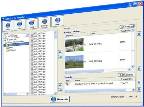 This free application can do a variety of different things with either video files or photo files. For example convert one video format to another, join video clips together to make one single video. Editing and adding sound to photos and, as mentioned above, create slideshows of photos complete with sound and subtitles. Download Foto2Avi here.
