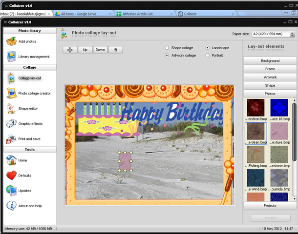 Collaizer is a smart, free photo collage creator software which lets you make beautiful photo collages out of your favorite pictures. This wonderful application comes with an intuitive interface wherein creating collages from several pictures of yours is really easy. Adding to that it comes with predefined shapes and templates which you could use to make your collages look beautiful. You may add your own artwork, select frames and backgrounds of your choice. The graphic touches such as the ‘sepia’ or the ’hamilton’ adds that extra personal touch to the collages you make out of your favorite pictures.