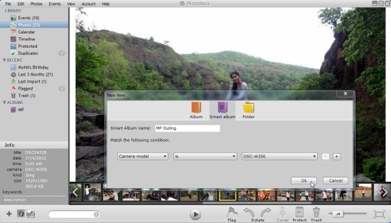 - Albums: You can also organize your photos in different albums. You can create albums and simply drag photos to them from different events. Phototheca also supports Smart Albums. These are the self updating albums that always displays photos based on a certain condition.
