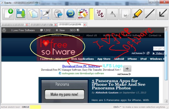 Exacto is a free screen capture tool that provides a built-in image editor to enhance captured screenshots. You can save enhanced screenshots in bmp, jpeg, gif, ico, and in tiff image format. Thus, unlike other screen capture software, you don’t need to open captured screenshot with an image editor. Exacto provides its own built-in image editor where you can open multiple captured screenshots and edit them.