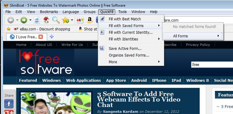 Now, this is something which is useful for users who fill out a lot of forms online. With SlimBoat you get automatic form filler, which is gonna automatically fill out registration forms and any other type of form that you might come across.