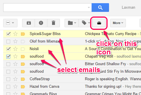 Step 3: In your Gmail Inbox, select the emails that you want to backup. After this, you need to use the Download button (just next to Labels icon) provided by this extension.