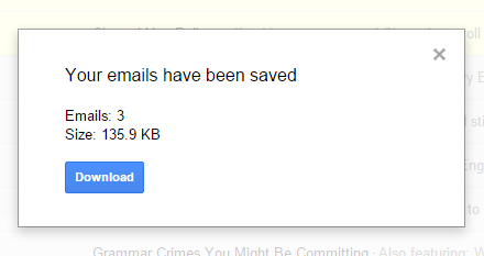 Step 4: When all the selected emails are ready to download, it will open a pop up with Download button. You can use that button to grab the zip file of all your emails.