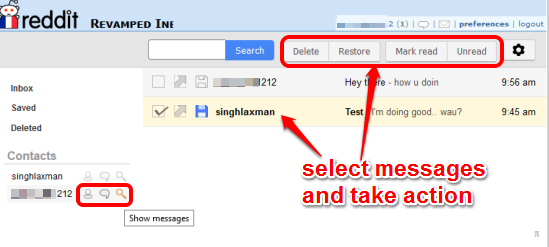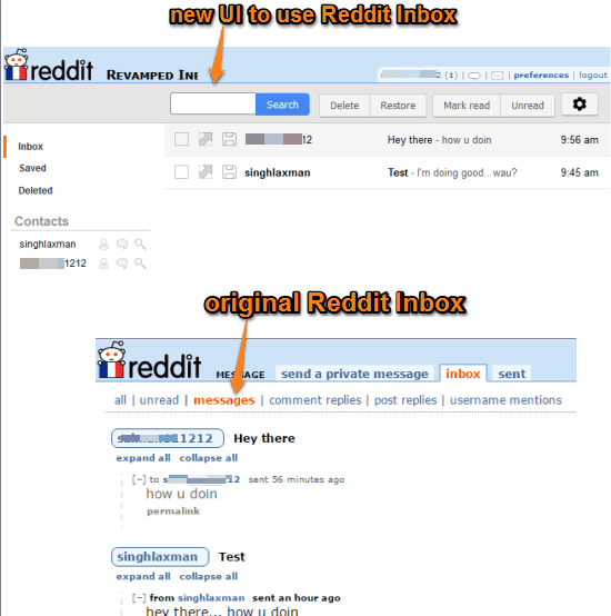 Apart from this, it comes with the search box to easily find an email and thread, which is not available in original Reddit Inbox. Moreover, you can also organize messages in a better way. It has three different labels: Inbox, Saved, and Deleted, which are self-explanatory. Although deleting the PMs from Reddit Inbox is not possible, but you can do the same using the new Inbox UI.