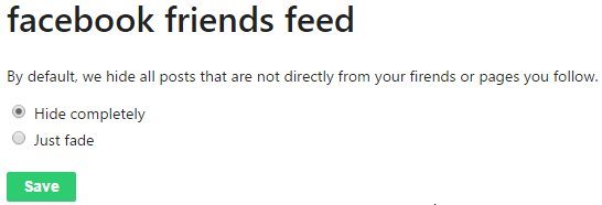 Here you can decide if you want to hide the unwanted posts from your Facebook timeline or you can also choose the fade out option. With the fade option the Facebook timeline will still show you all the updates on your timeline, but the ones which are not from your friends will be faded out. So it is still less distracting while going through your timeline.
