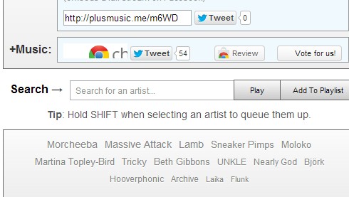 After installation, left click on the toolbar icon of PlusMusic that appears in the top right corner of the screen. Type in the artist name that you’d like to listen to and if there are songs by that artists somewhere on the web, playlist will be populated and songs will start playing right away.
