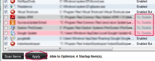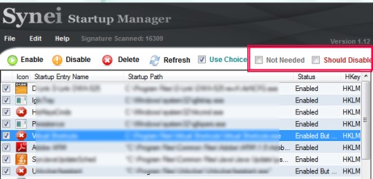 Other than this, you can scan all of the startup items more specifically by enabling ‘Not Needed’ and ‘Should Disabled’ functions available at top right side (as visible in first screenshot). Enabling these functions will analyze and scan each startup item. After completing the scanning, it will show you those items (in different colors) to disable or delete which are not needed in Windows startup. After this, you can hit the apply button and can disable those unnecessary startup items.