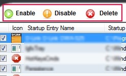Using this software is an easy task. After installing it to your computer, you can use it for managing startup programs. While opening it for the first time, it will show you the startup entries of your computer. You can select the desired entry for enabling, disabling, or deleting. This you can do manually using available buttons.