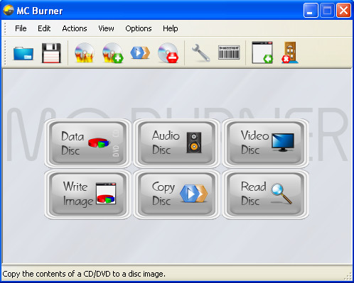 MC Burner can also manipulate with rewritable discs, you can erase them and format them, so that old data makes way for new files. To start burning discs with the help of MC Burner you need to decide what kind of session you want, from the previously mentioned ones, and then click on that button from the default window.