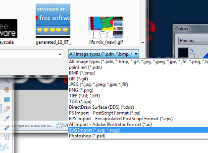 When you have completed all 4 steps, then you can open SVG file in Paint.NET. You can cross check support for opening SVG file by checking the file types from file uploading window as shown in the screenshot below.