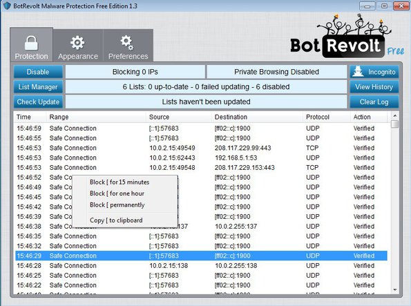 How to detect and block malicious Internet connections with Bot Revolt free malware connection detection software
