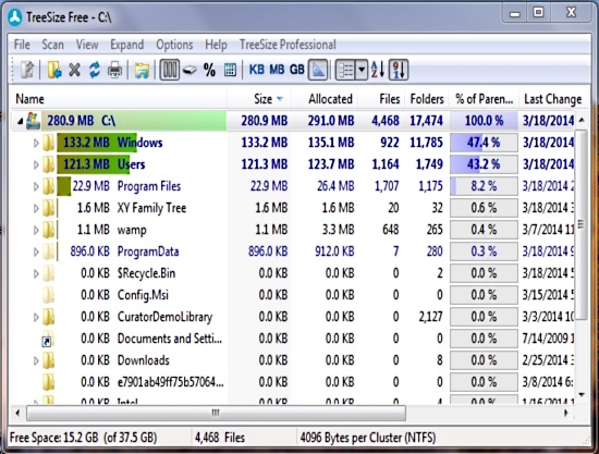 Treesize Free is a free and useful disk space analyzer software. It has a simple interface and is easy to use.