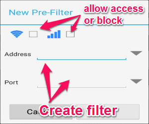 Apart from that, it also supports fine-grained access control for websites. That means you can create custom (pre and post) filters based on domain name, IP address, and hostname, in order to allow or block any specific connection (Wi-Fi or mobile data) to the websites for accessing the Internet. Simply go to the “Global Filters” tab to create new custom filters.