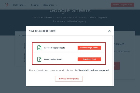 Like Vertex42, HubSpot also provided a template for the Eisenhower Matrix in Google Sheets and Excel format. Click on the link that we have provided below, provide some basic information about yourself and your organization and you will be able to download the required templates.