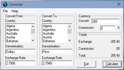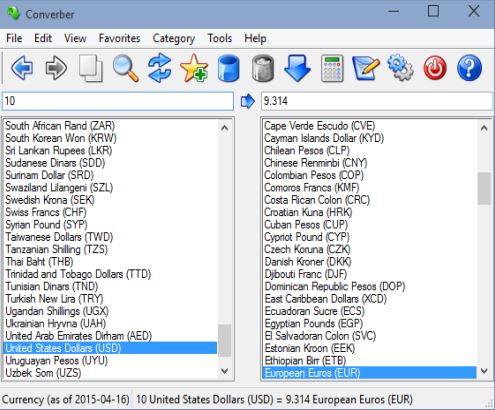 Before you do anything, don’t forget to select Help >> Update Conversion list, to get the latest currency exchange rates from the web. Use the left column to select the original currency and then the right column to select the currency in which you want to convert the original currency. Values are typed in into the input boxes above the currency lists.