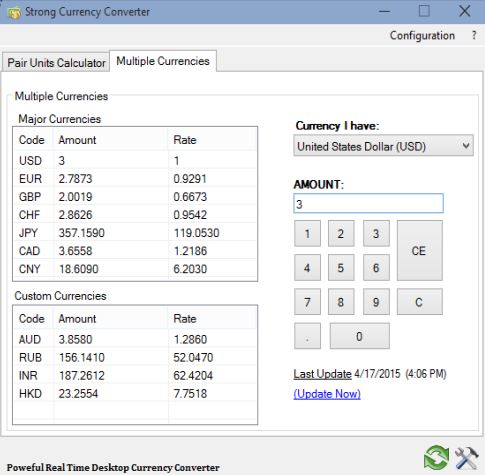 Strong Currency Converter is a more advanced currency converter software, which even supports conversion of multiple currencies at once. The “Pair Units Calculator” tab is for conversion of individual currency pairs.