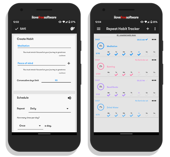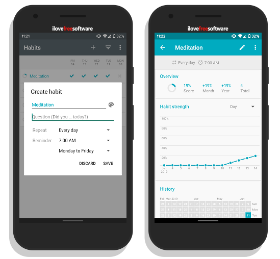 I compiled a list of 5 free habit tracker Android apps here which you can use to build and track your habits. Initially, you can record your new or existing activities to these apps and set a goal to make that a habit. Then, you can mark your daily activities and track your habits. These apps also let you set reminders for the activities so you won’t miss it or forget about it. So, let’s check these apps in details.