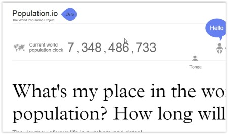 Population.io is the fourth website in the list to check world population live. Although still in its beta stage, the website offers quite a lot of helpful information. You are provided with a constantly ticking current world population clock, along with animated characters depicting birth of children in different parts of the world. The interface of the website is pretty good-looking and attracts your attention instantly.