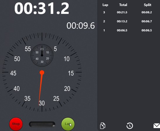 Stopwatch one is a free stopwatch app for Windows 10. The app interface can be seen in the screenshot above. The app has a professional looking interface and can be used to record time for various activities. Just click the start button given at the bottom of the clock. The clock will start running and you will start seeing an option to record laps as well. Laps are recorded with split time and total time. Laps can be recorded for repetitive activities like while exercising, swimming, etc.