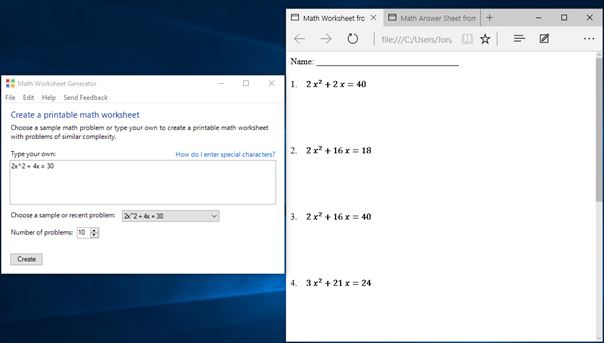 Microsoft Math Worksheet Generator is a very simplistic math worksheet generator software for Windows 10 which can be used to create a large number of different math problems, ranging from basics like addition, subtraction, multiplication, division, to the more advanced ones like equations with two variables (x and y). After launching Math Worksheet Generator, you’ll see a simplistic interface (see image above).