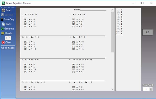 Linear Equation Generator – free math worksheet generator software for Windows 10