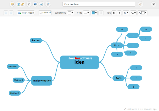 Bubbl.us is an online mind map maker website where you can create concept and mind maps for brainstorming. As a free user, you can create up to 3 maps here and download them as PNG/JPG image or HTML (outline) file.