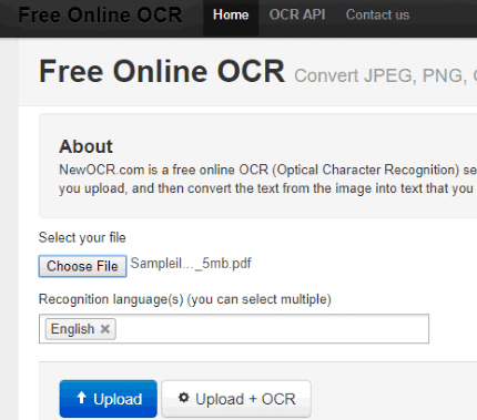 Newocr.com has some very good features which make it a tough competitor to rest of the websites. The best part is there is no upload limit and no registration is needed. When you add PDF, press “Upload+OCR” button. This will convert scanned page of PDF and show you the output text. You can also select area of PDF page to get the output as per your requirements. Moreover, you can also edit the output text which is its fantastic feature. You can do some changes before saving the output. Once editing is done, save output as DOC file.