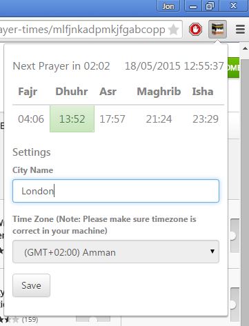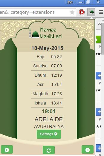It’s possible to turn on Adhan, or call to prayer. With those things setup, the extension will give you a time table for your prayers, and it will also work in the background, giving you reminders for when prayer times are needed.