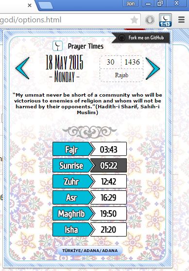 Prayer Times by Software doesn’t have quite as advanced set of features as the two previously mentioned prayer reminder extensions.