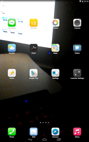 Transparent Screen Fun works like any other live wallpaper. After installation go to the background settings of your launcher and set Transparent Screen Fun live wallpaper as your background. Once you return to the home screen, you’ll see that the screen of your device is “transparent”, see image above.