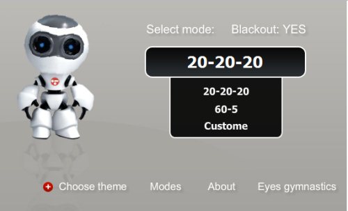 Custom mode is the easiest mode. You can define your own break time and set your break frequency. In the break you must rest your eyes and relax.